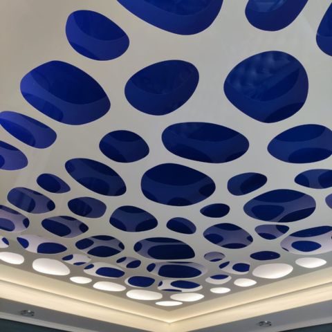 Le plafond tendu est un système de revêtement innovant composé d’une membrane thermo-extensible fixée sur des profilés périphériques.